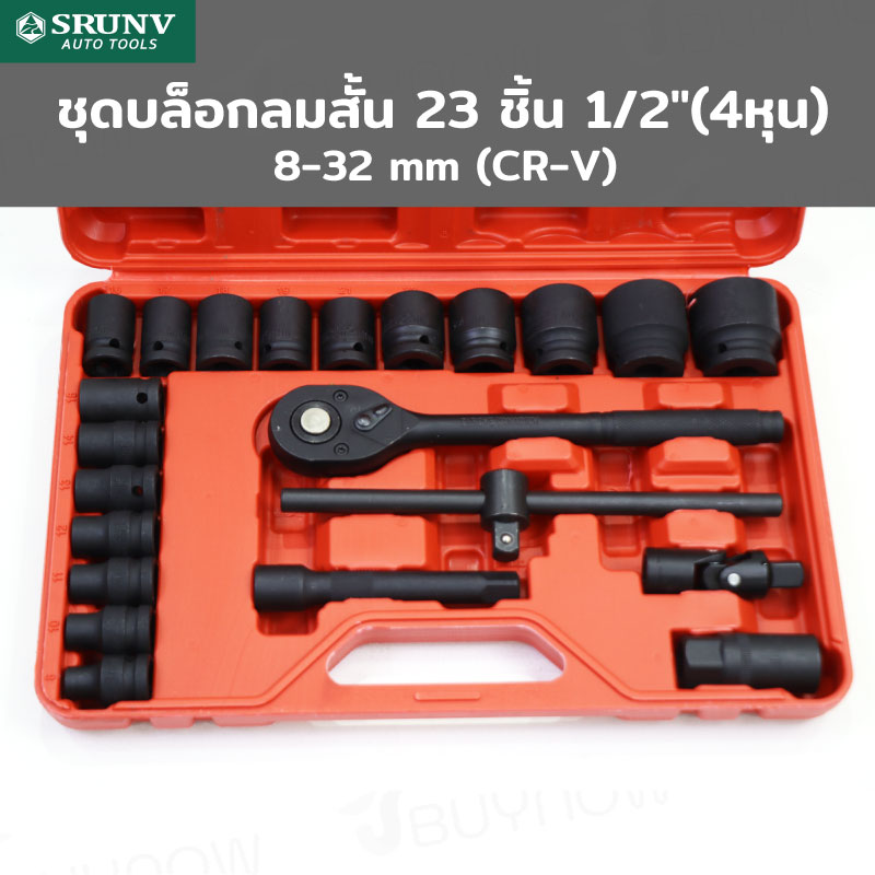 ชุดบล็อก ลมสั้น 23 ชิ้น 1/2 นิ้ว (4 หุน) 8-32MM CR-V JBUYNOW SRUNV QD-TZGJ010