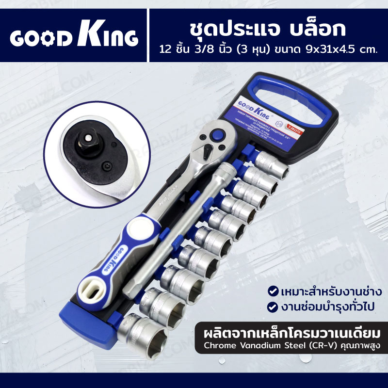 ชุดประแจ บล็อก 12 ชิ้น 3/8 นิ้ว (3 หุน) 10-22 CR-V GOODK T-381272