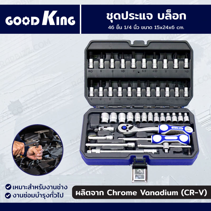 ชุดประแจ บล็อก 46 ชิ้น 1/4 นิ้ว (2 หุน) CR-V GOODK JBUYNOW C-10046