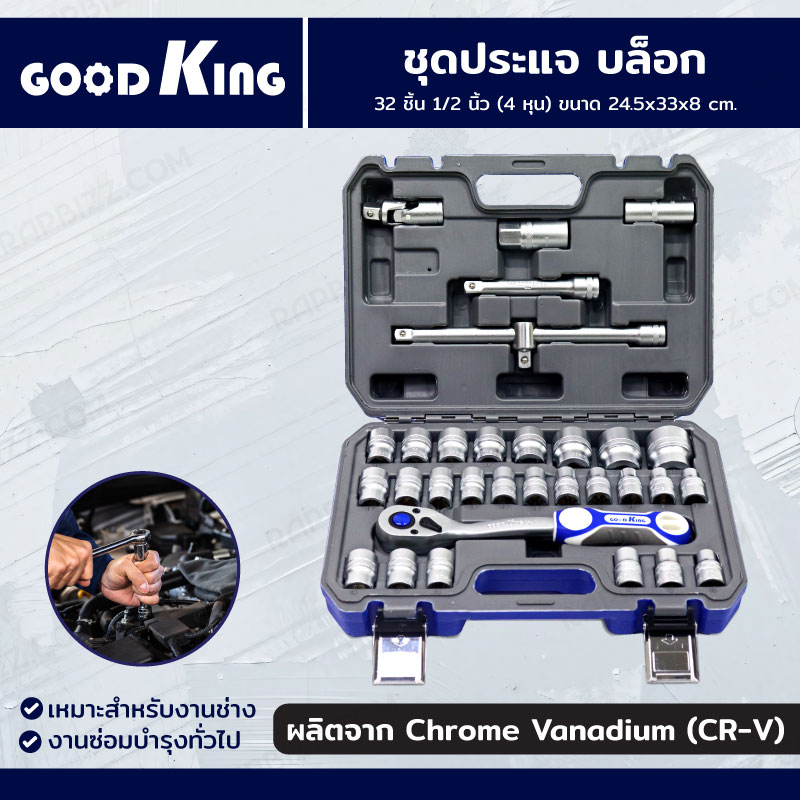 ชุดประแจ บล็อก 32 ชิ้น 1/2 นิ้ว (4 หุน) CR-V GOODK B-10032
