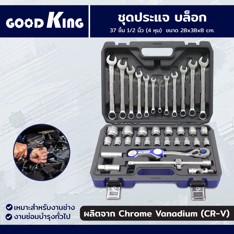 ชุดประแจ บล็อก 37 ชิ้น 1/2 นิ้ว (4 หุน) CR-V GOODK B-10037