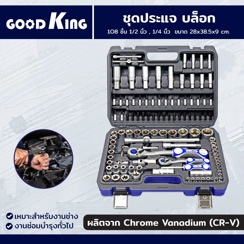 ชุดประแจ บล็อก 108 ชิ้น 1/2 นิ้ว ,1/4 นิ้ว CR-V GOODK B-10108