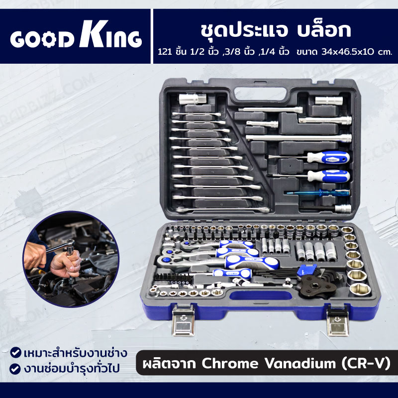 ชุดประแจ บล็อก 121 ชิ้น 1/2 นิ้ว ,3/8 นิ้ว ,1/4 นิ้ว CR-V GOODK B-10121