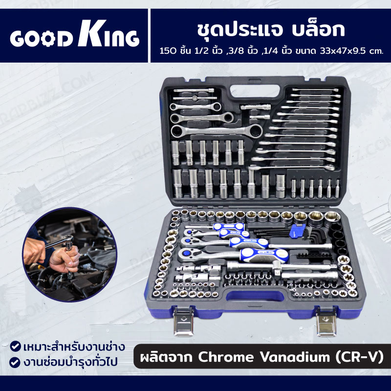 ชุดประแจ บล็อก 150 ชิ้น 1/2 นิ้ว ,3/8 นิ้ว ,1/4 นิ้ว CR-V GOODK B-10150
