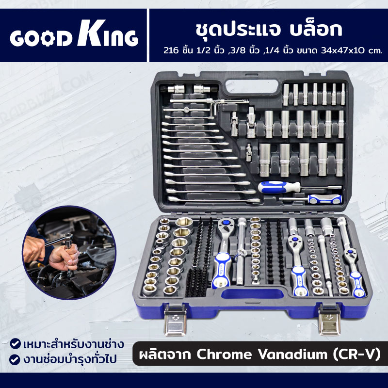 ชุดประแจ บล็อก 216 ชิ้น 1/2 นิ้ว ,3/8 นิ้ว ,1/4 นิ้ว CR-V GOODK B-10216
