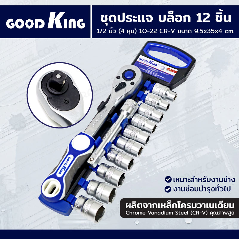 ชุดประแจ บล็อก 12 ชิ้น 1/2 นิ้ว (4 หุน) 10-22 CR-V GOODK T-121272