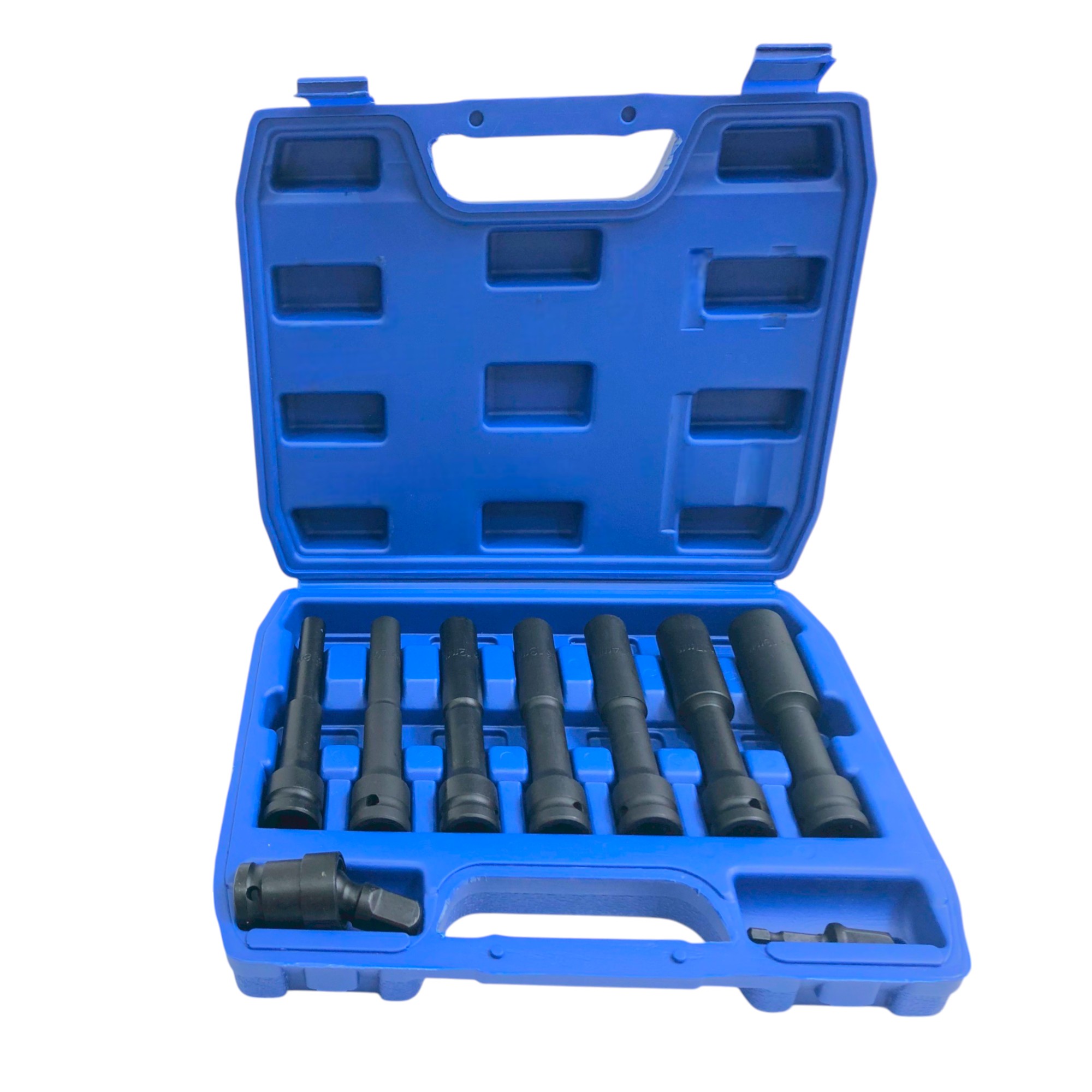ชุดบล็อกยาว บล็อกลม บล็อกยาว 128 mm ขนาด1/2 นิ้ว (4 หุน) 9 ชิ้น