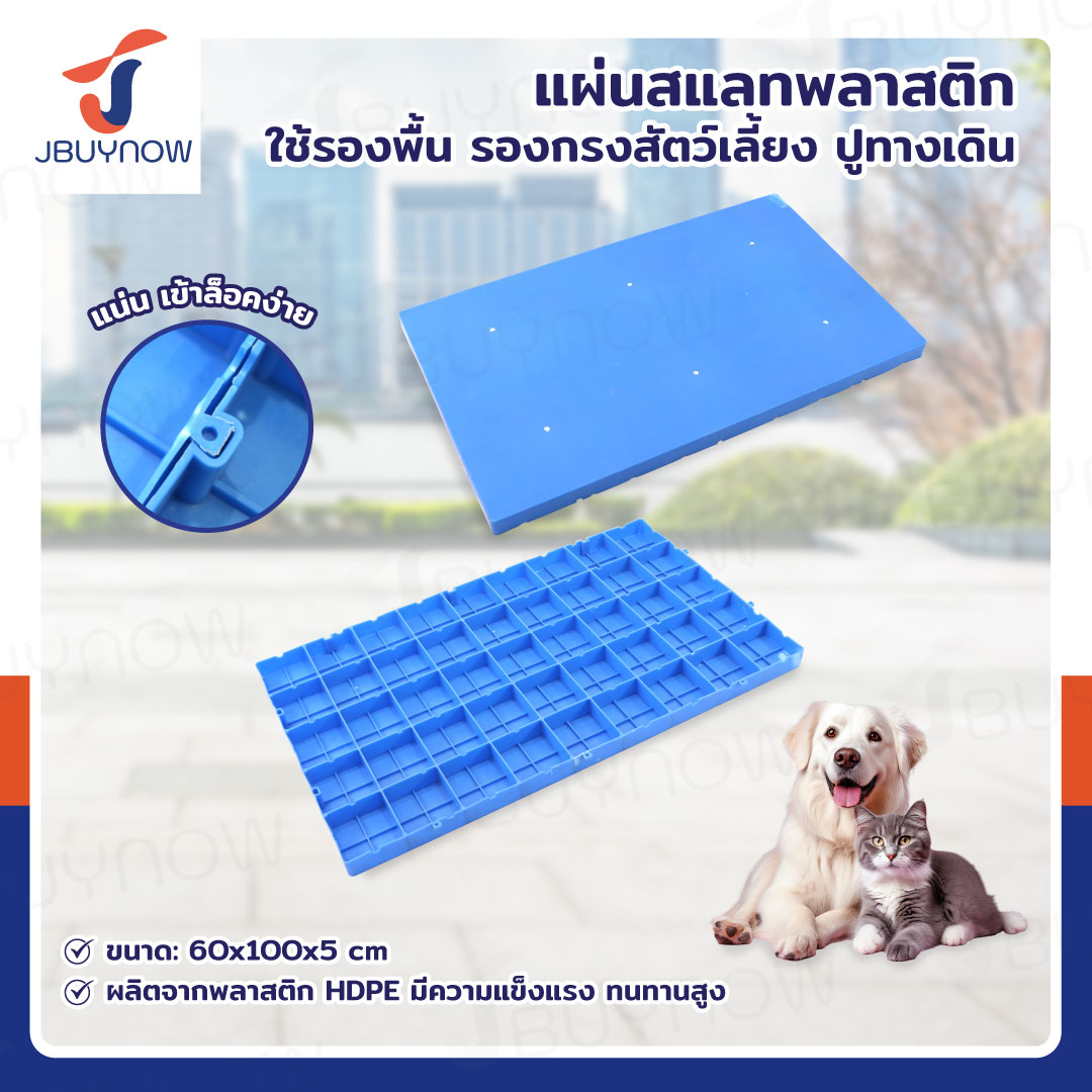พาเลทพลาสติก HDPE หน้าเรียบ 60x100x5 ซม. สีฟ้า JBUYNOW LH82-070