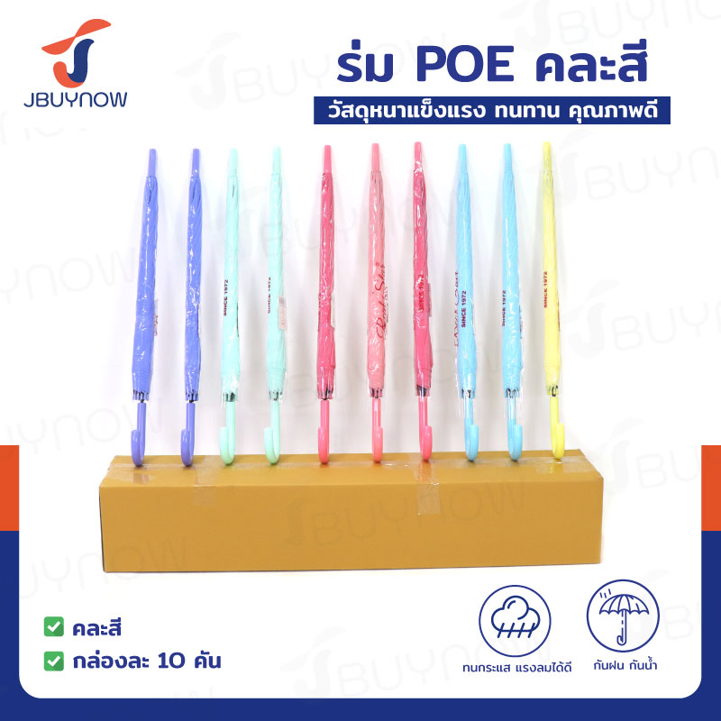 ร่ม POE ร่มพรีเมี่ยม ร่มกันฝน ด้ามยาว คละสี แพ็คละ 10 ชิ้น