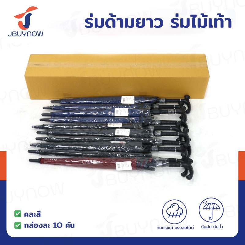 ร่มด้ามยาว ร่มไม้เท้า คละสี แพ็คละ 10 ชิ้น