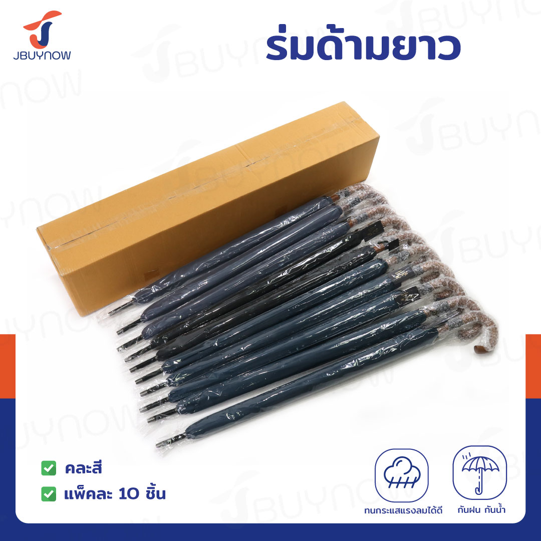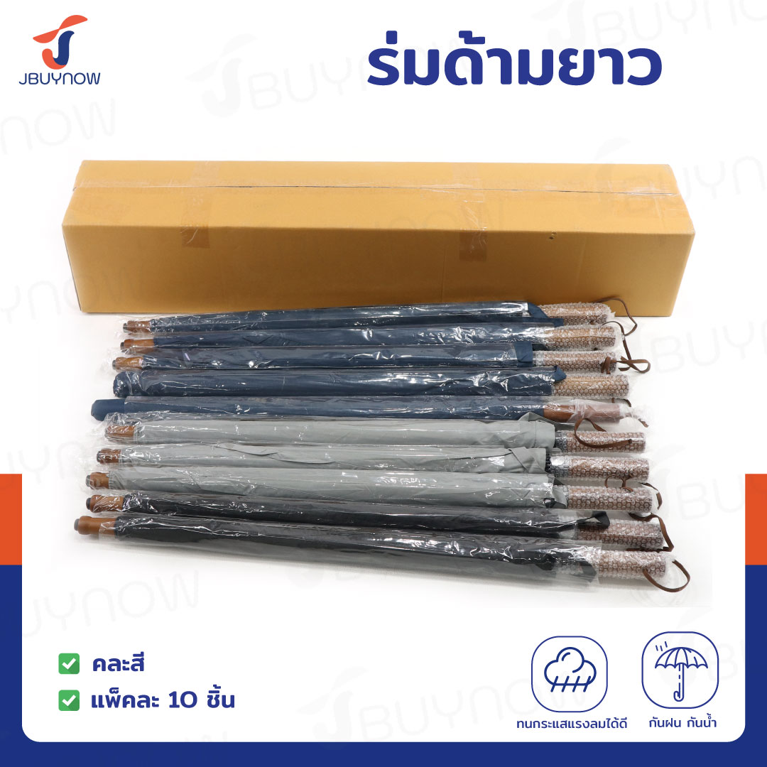 ร่มด้ามยาว ร่มพรีเมี่ยม คละสี แพ็คละ 10 ชิ้น