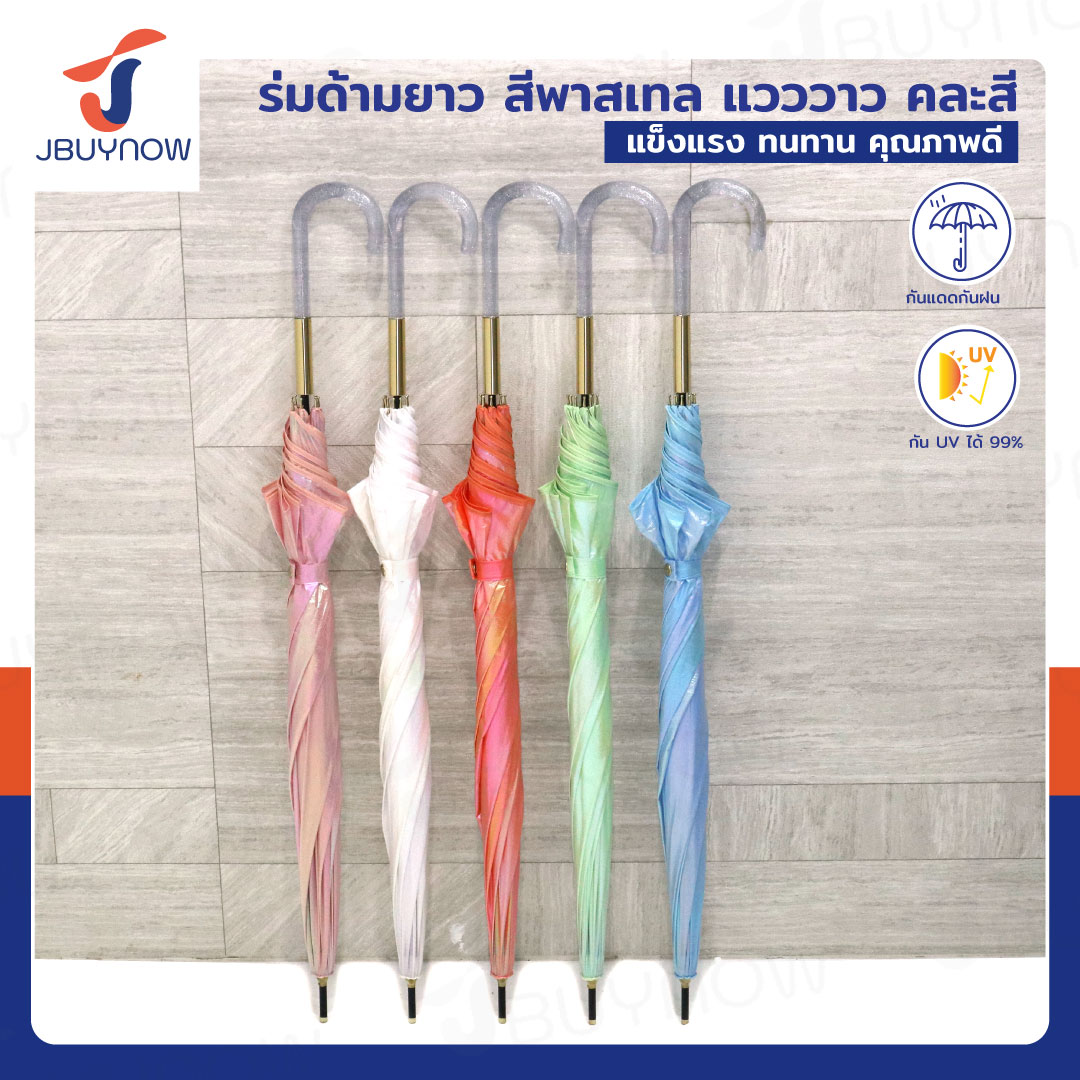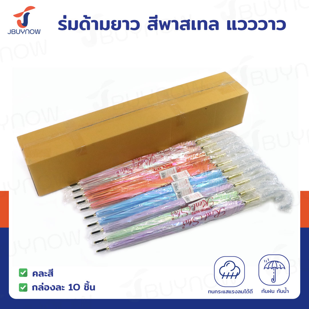 ร่มด้ามยาว ร่มพรีเมี่ยม สีพาสเทล แวววาว คละสี แพ็คละ 10 ชิ้น