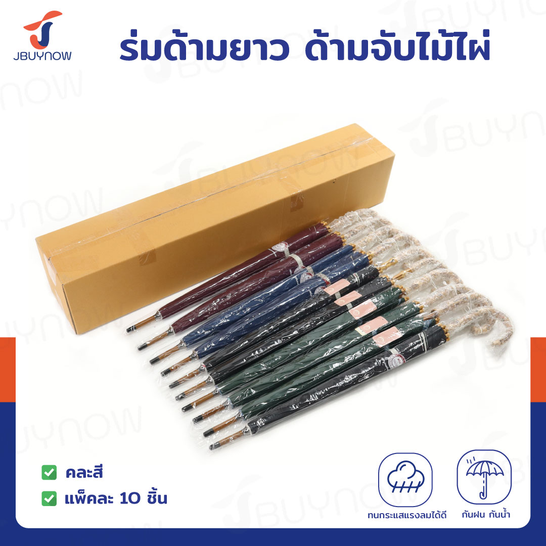 ร่มด้ามยาว ด้ามจับไม้ไผ่ คละสี แพ็คละ 10 ชิ้น