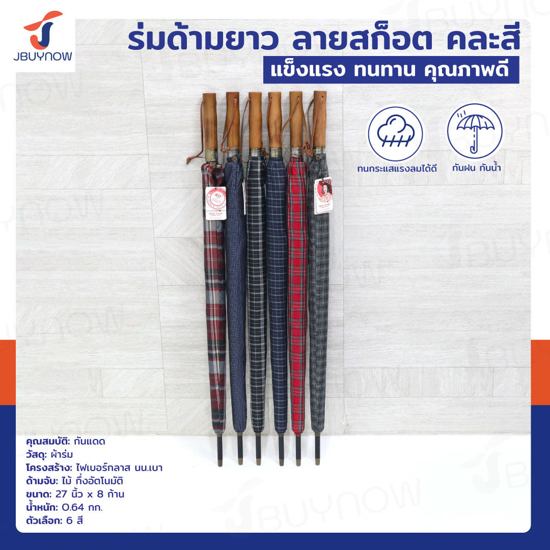 ร่มด้ามยาว ร่มพรีเมี่ยม ลาย สก็อต คละสี JBUYNOW RST191