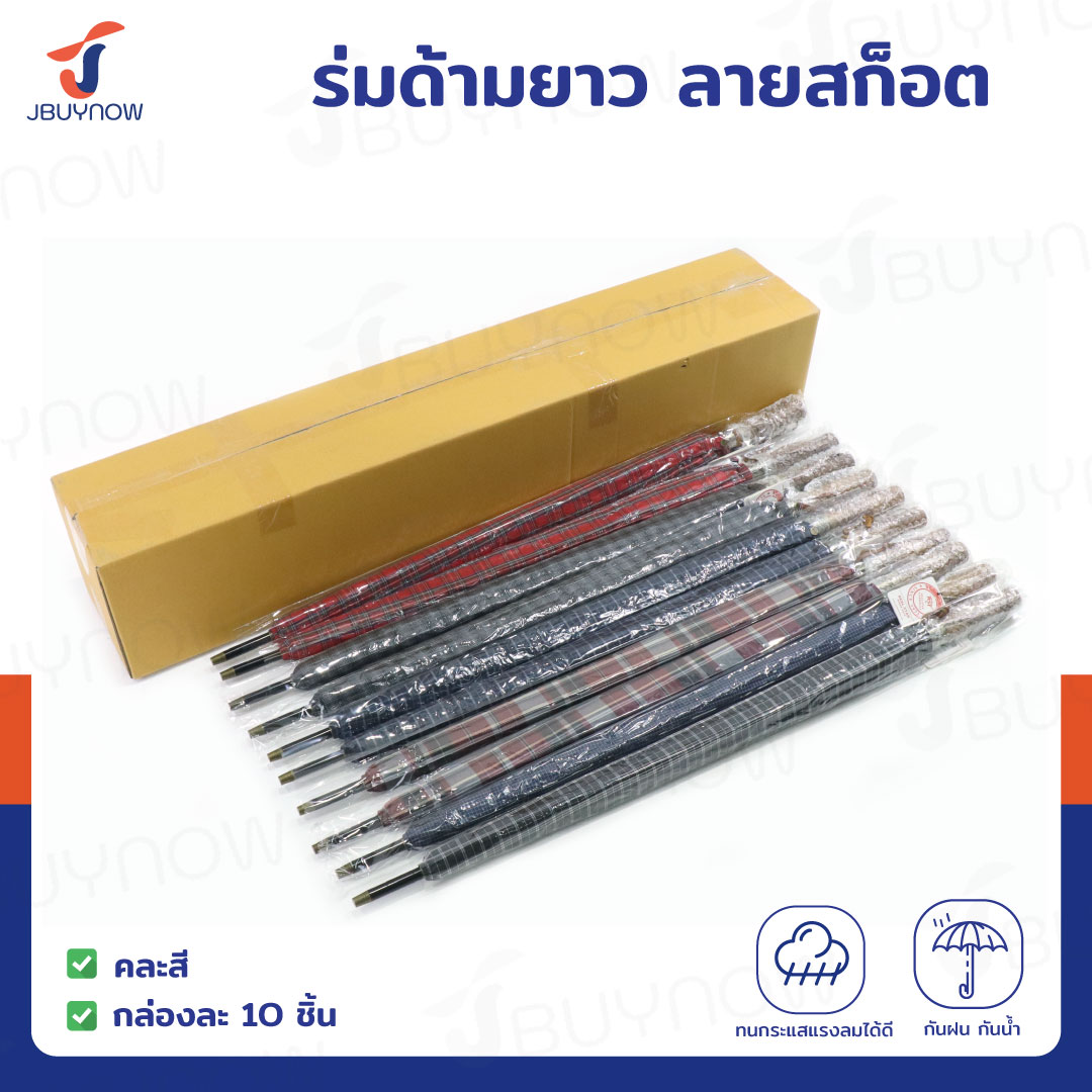ร่มด้ามยาว ร่มพรีเมี่ยม ลาย สก็อต คละสี แพ็คละ 10 ชิ้น
