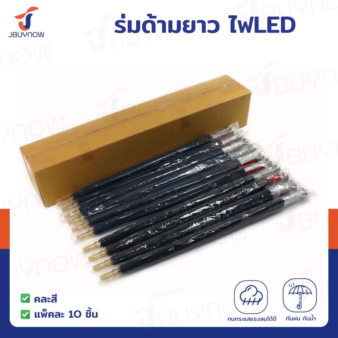 ร่มด้ามยาว ร่มพรีเมี่ยม ไฟ LED คละสี แพ็คละ 10 ชิ้น