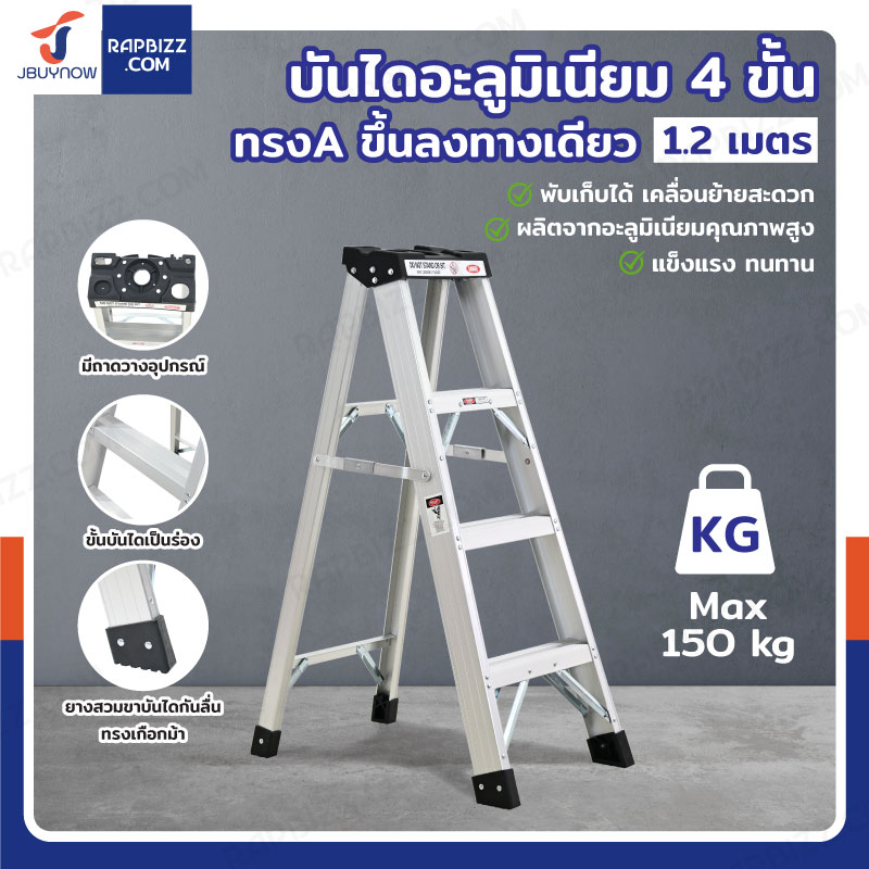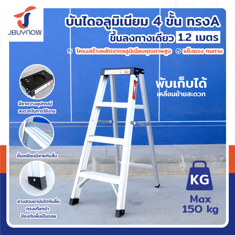 บันได อลูมิเนียม 4 ขั้น 1.2 เมตร ทรงA ขึ้นลงทางเดียว มีที่วางอุปกรณ์ JBUYNOW ARD-12