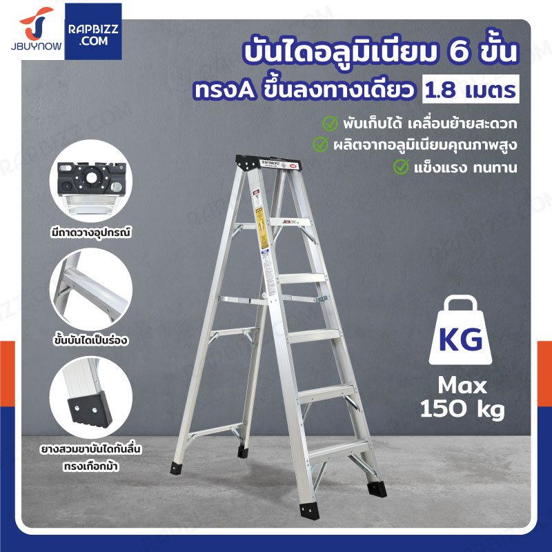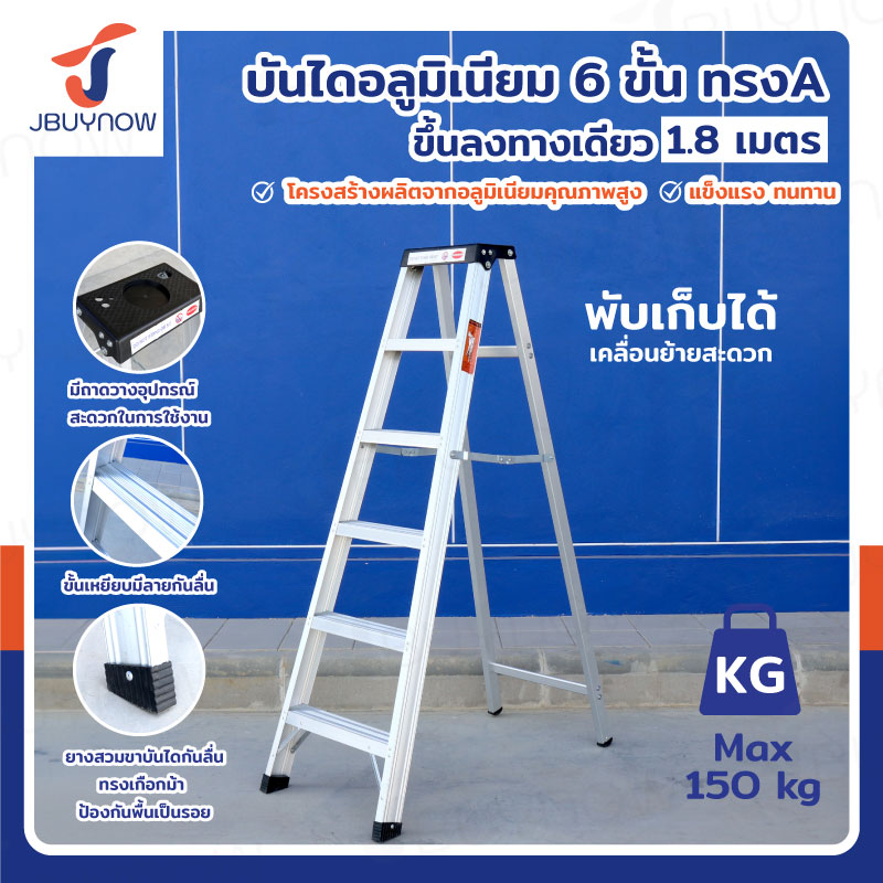 บันได อลูมิเนียม 6 ขั้น 1.8 เมตร ทรงA ขึ้นลงทางเดียว มีที่วางอุปกรณ์ JBUYNOW ARD-18