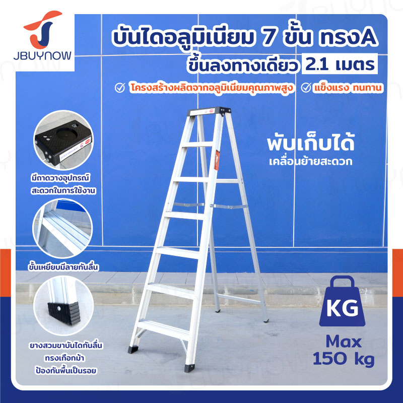 บันได อลูมิเนียม 7 ขั้น 2.1 เมตร ทรงA ขึ้นลงทางเดียว มีที่วางอุปกรณ์ JBUYNOW ARD-21