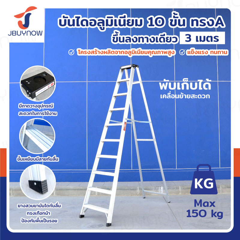 บันได อลูมิเนียม 10 ขั้น 3 เมตร ทรงA ขึ้นลงทางเดียว มีที่วางอุปกรณ์ JBUYNOW ARD-30