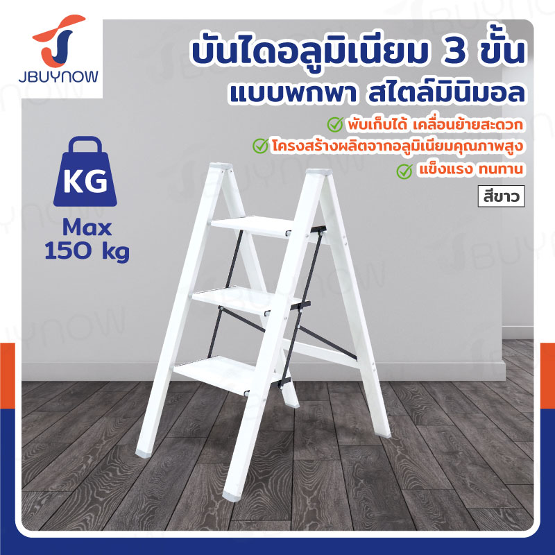 บันได อลูมิเนียม 3 ขั้น 0.8 เมตร แบบพกพา สไตล์มินิมอล สีขาว JBUYNOW HJ-3