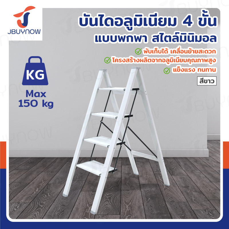 บันได อลูมิเนียม 4 ขั้น 1 เมตร แบบพกพา สไตล์มินิมอล สีขาว JBUYNOW HJ-4