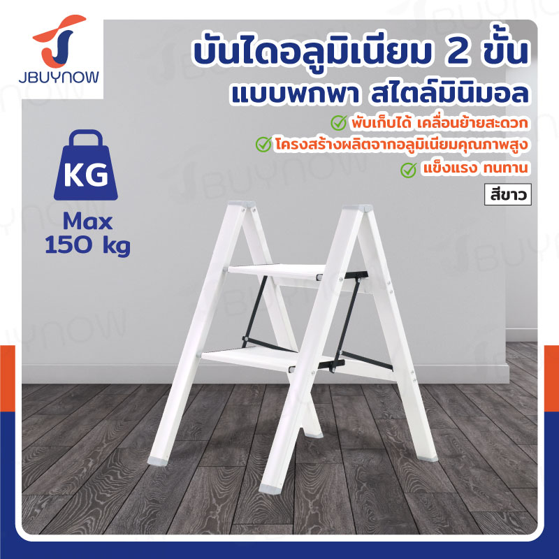 บันได อลูมิเนียม 2 ขั้น 0.6 เมตร แบบพกพา สไตล์มินิมอล สีขาว JBUYNOW HJ-2W