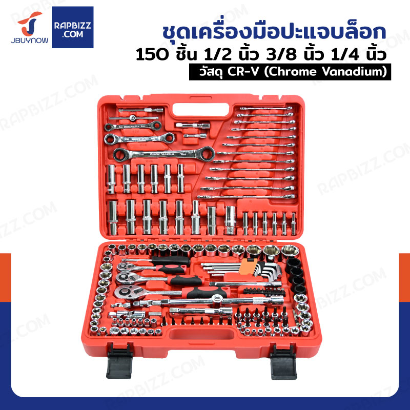 ชุดเครื่องมือ ประแจบล็อก 150 ชิ้น 1/2 นิ้ว 3/8 นิ้ว 1/4 นิ้ว CR-V A1-E15003