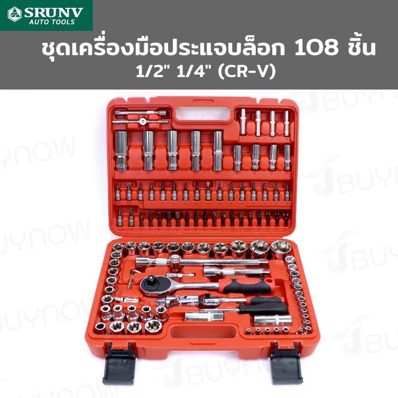 ชุดเครื่องมือ ประแจบล็อก 108 ชิ้น 1/2 นิ้ว 1/4 นิ้ว CR-V A1-E10802