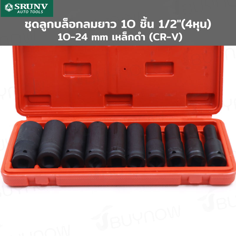 ชุดลูกบล็อกลมยาว 10 ชิ้น 1/2(4 หุน) 10-24MM เหล็ก ดำ CR-V JBUYNOW SRUNV A1-D01010