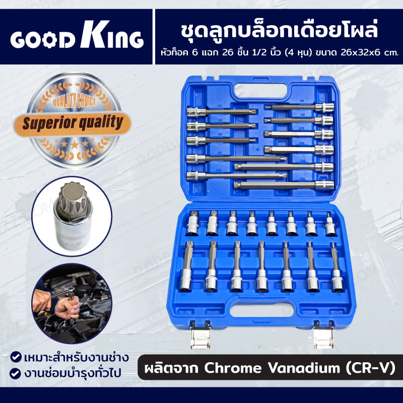 ชุดลูกบล็อกเดือยโผล่ หัวท็อค 6 แฉก 26 ชิ้น 1/2 นิ้ว (4 หุน) GOODK JBUYNOW GVM-10026