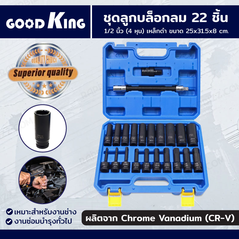 ชุดลูกบล็อกลม 22 ชิ้น 1/2 นิ้ว (4 หุน) เหล็ก ดำ CR-V GOODK JBUYNOW UGB-10022