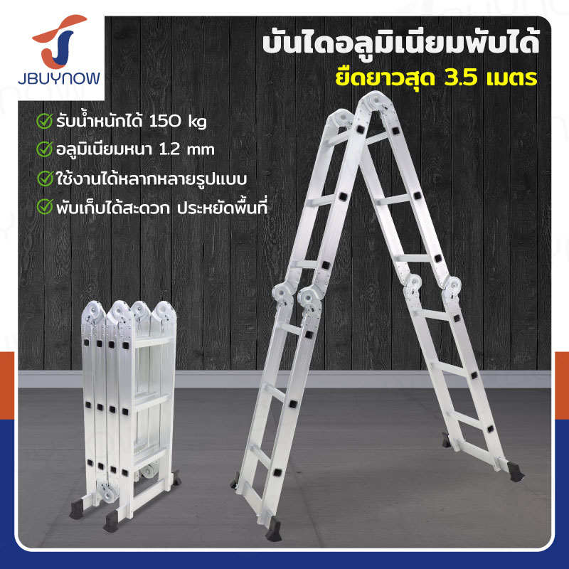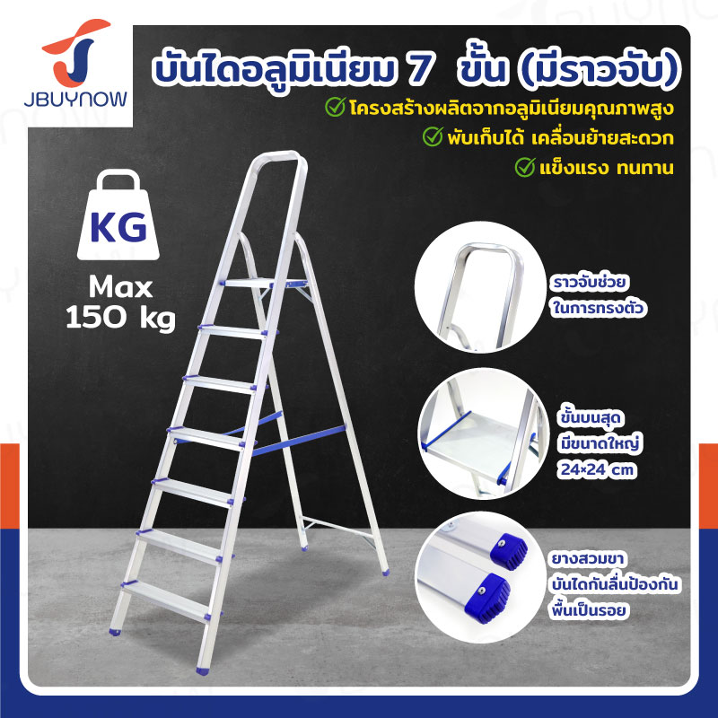 บันได อลูมิเนียม พับเก็บได้ 7 ขั้น 1.8 เมตร มีราวจับ รับน้ำหนักได้ 150 KG JBUYNOW KND-7