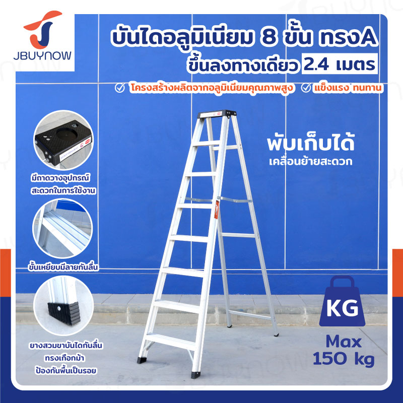 บันได อลูมิเนียม 8 ขั้น 2.4 เมตร ทรงA ขึ้นลงทางเดียว มีที่วางอุปกรณ์ JBUYNOW ARD-24
