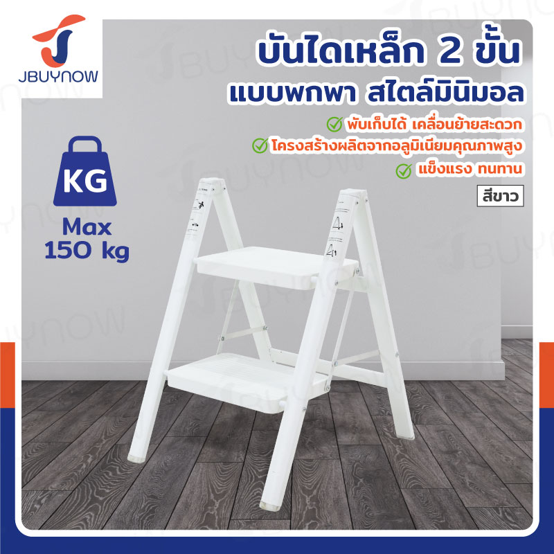 บันได เหล็ก 2 ขั้น 0.6 เมตร แบบพกพา สไตล์มินิมอล สีขาว JBUYNOW HJT-2