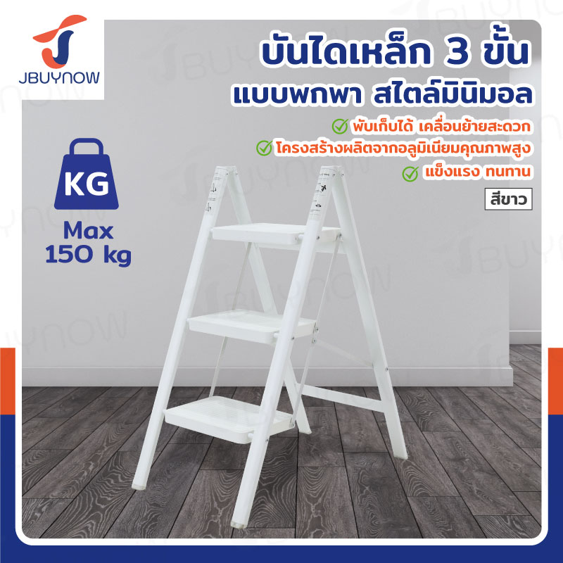 บันได เหล็ก 3 ขั้น 0.8 เมตร แบบพกพา สไตล์มินิมอล สีขาว JBUYNOW HJT-3
