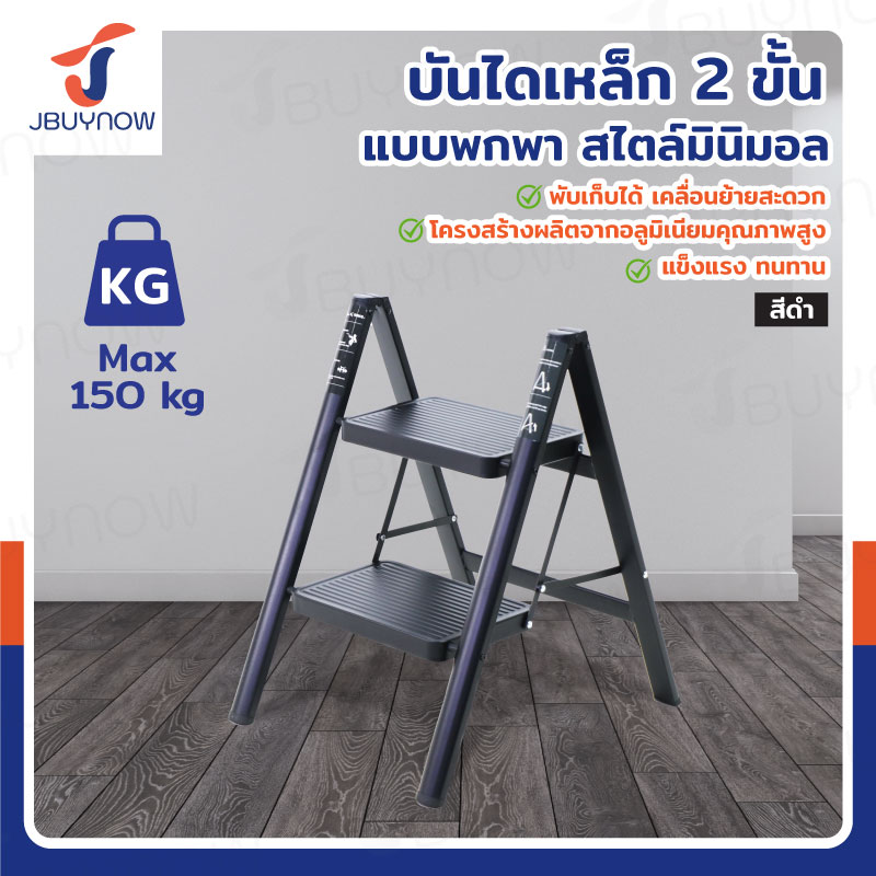 บันได เหล็ก 2 ขั้น 0.6 เมตร แบบพกพา สไตล์มินิมอล สีดำ JBUYNOW HJT-2B