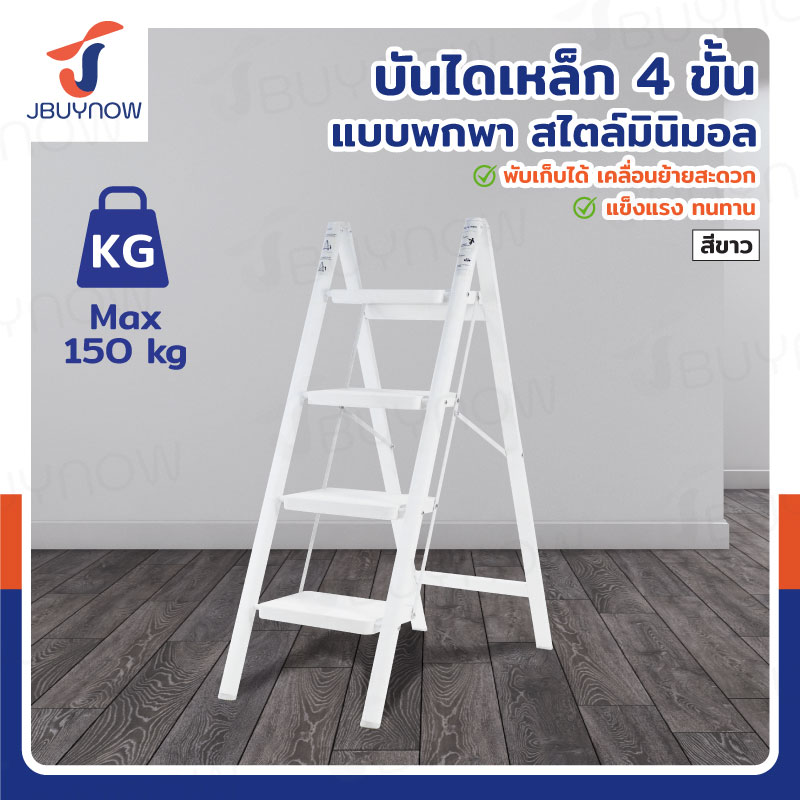 บันได เหล็ก 4 ขั้น 1 เมตร แบบพกพา สไตล์มินิมอล สีขาว JBUYNOW HJT-4W