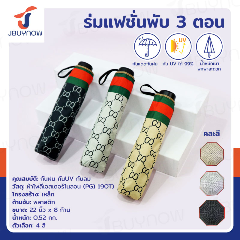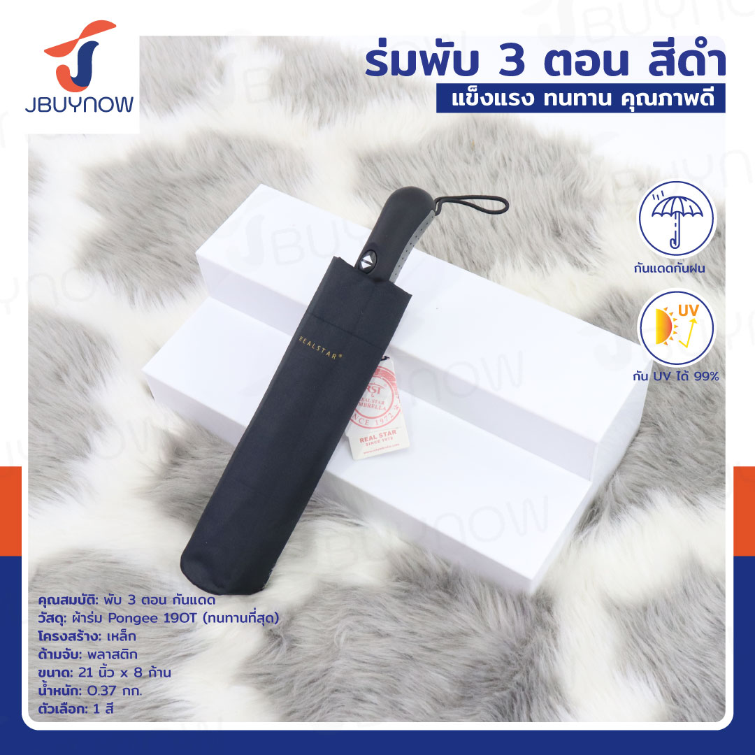 ร่มพับ 3 ตอน ร่มพรีเมี่ยม สีดำ JBUYNOW RST3911-B