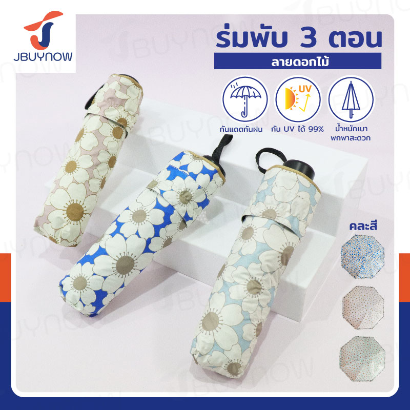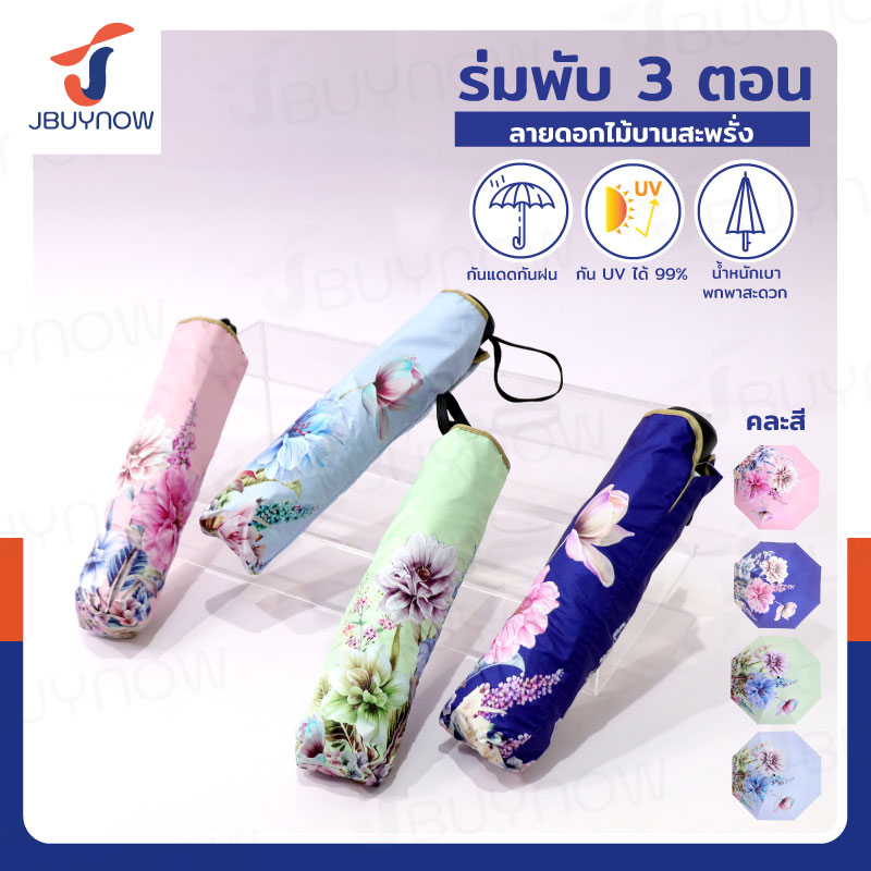 ร่มพับ 3 ตอน ลาย ดอกไม้ คละสี RB-237