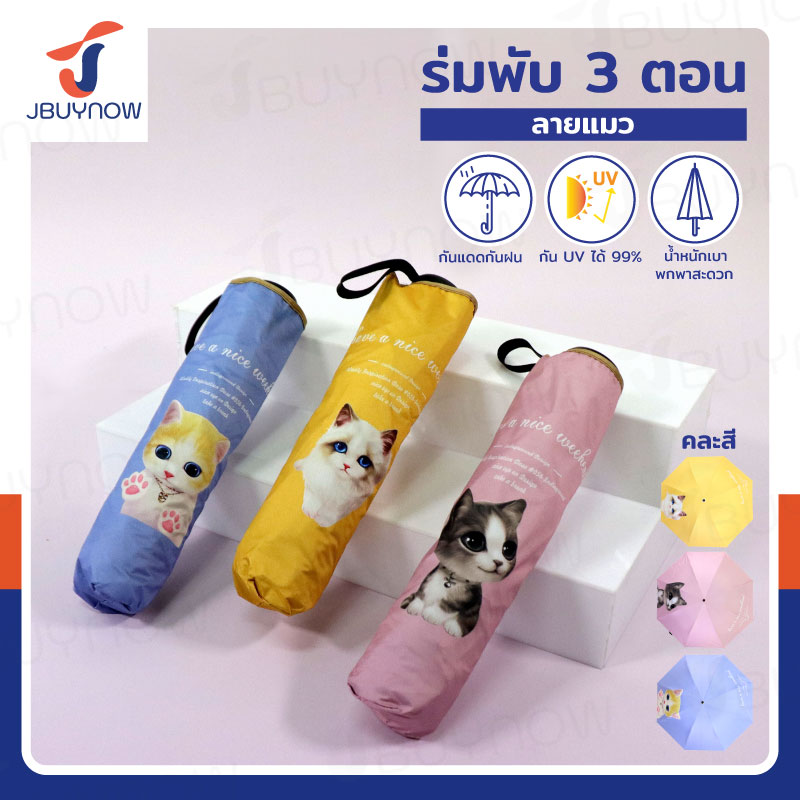 ร่มพับ 3 ตอน ลาย แมว คละสี RB-209