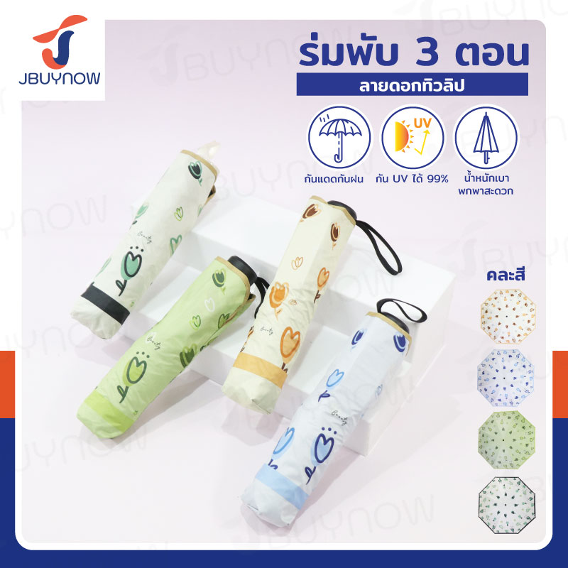 ร่มพับ 3 ตอน ลายดอกทิวลิป คละสี RB-210