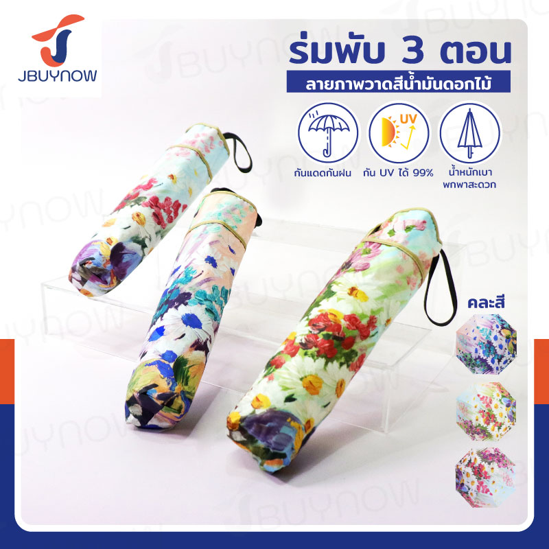 ร่มพับ 3 ตอน ลาย ภาพวาดสีน้ำมันดอกไม้หลากสี คละสี RB-107