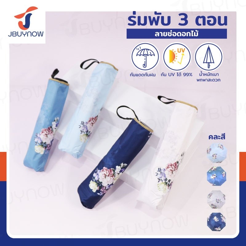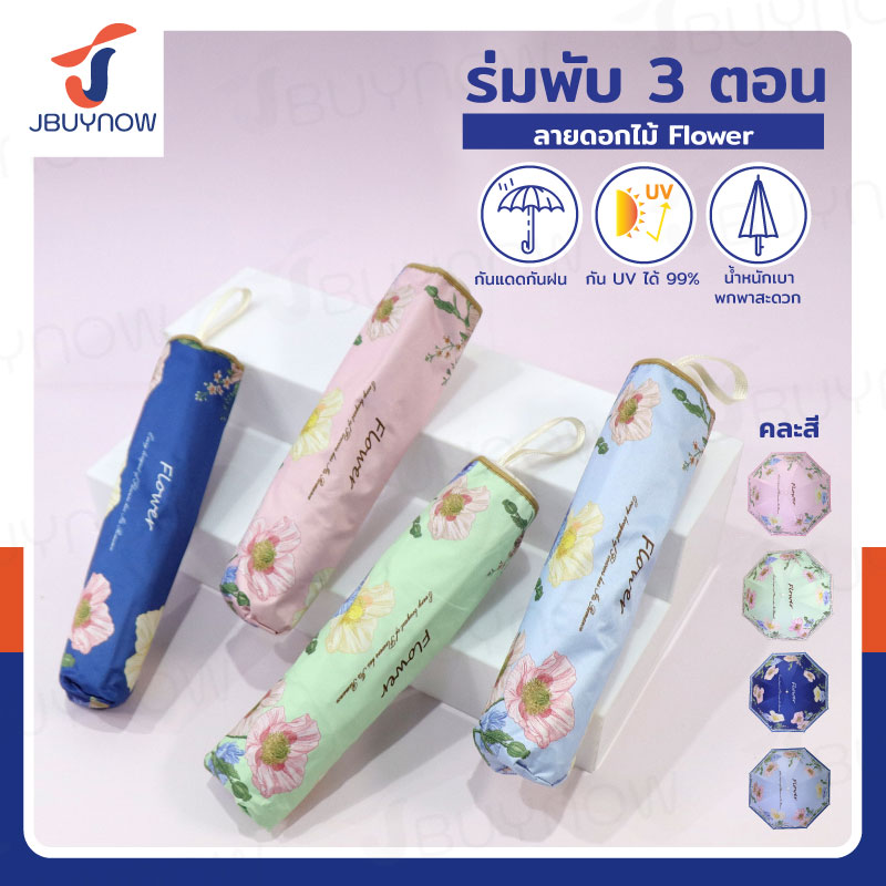 ร่มพับ 3 ตอน ร่มแฟชั่น ลาย ดอกไม้ คละสี RB-395