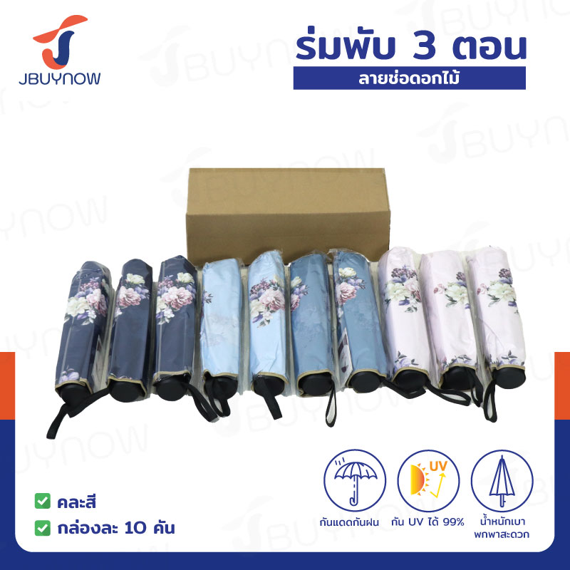 ร่มพับ 3 ตอน ลายช่อดอกไม้ คละสี แพ็คละ 10 ชิ้น RB-340