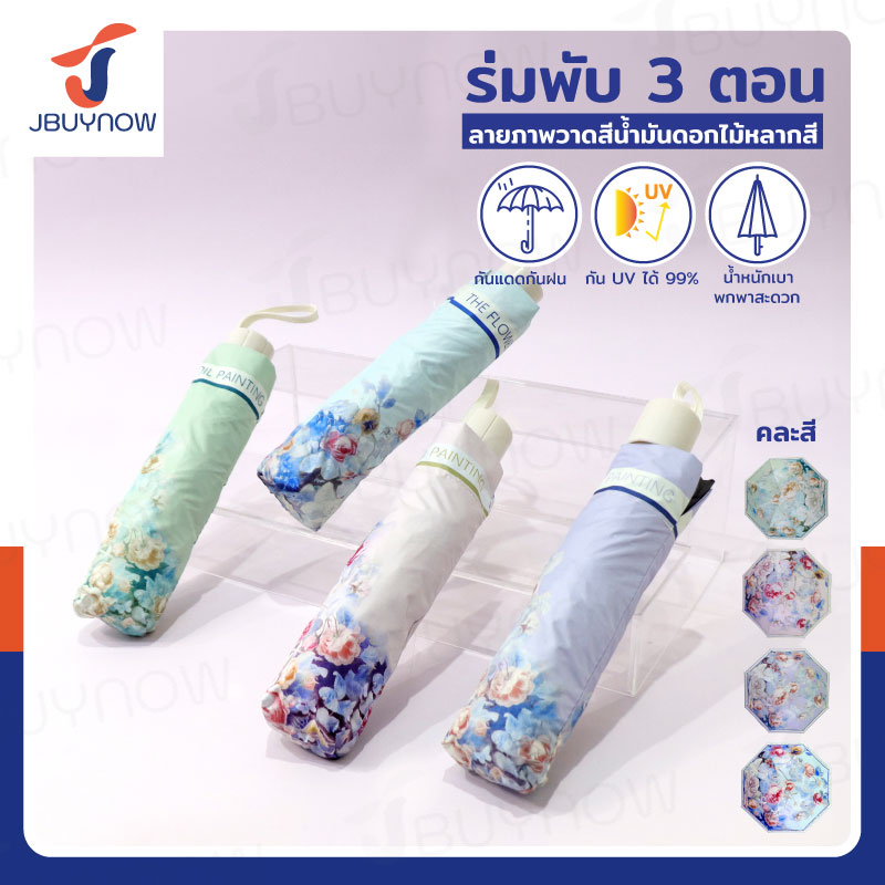 ร่มพับ 3 ตอน ลาย ภาพวาดสีน้ำมันดอกไม้ คละสี RB-725