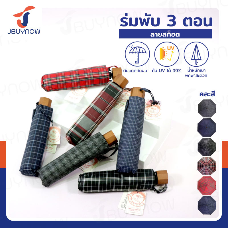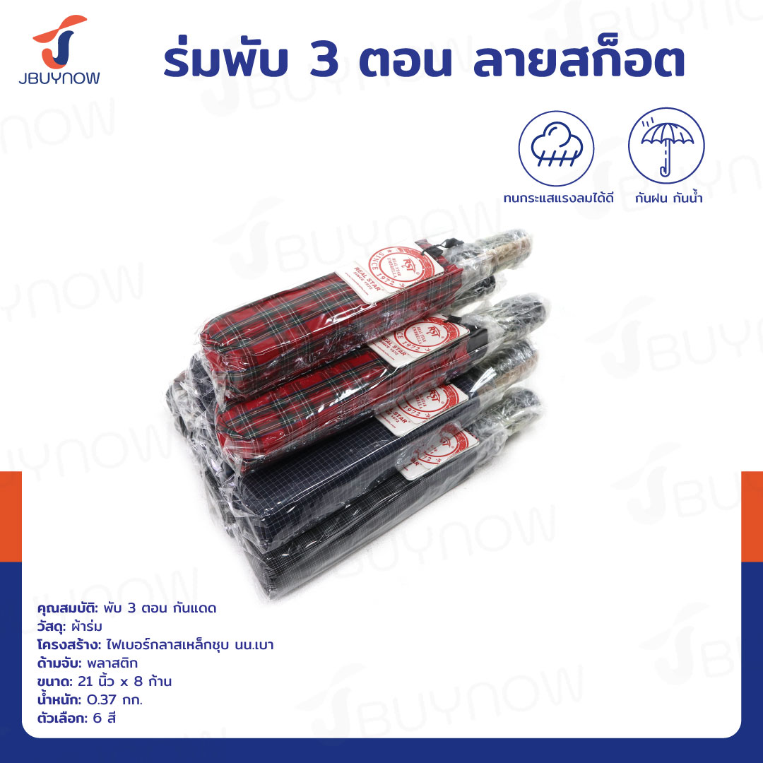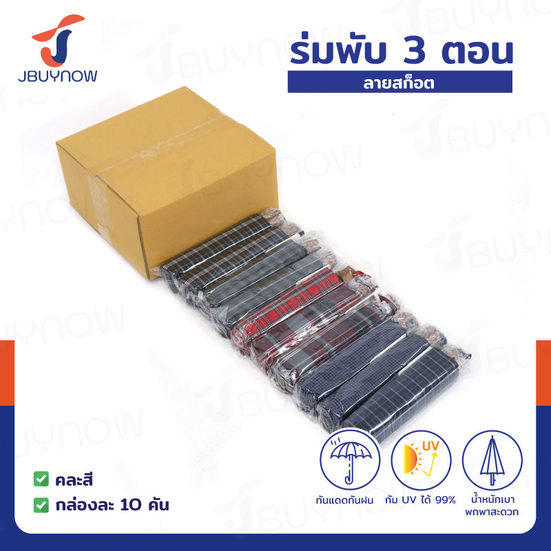 ร่มพับ 3 ตอน ลาย สก็อต คละสี JBUYNOW RST3921