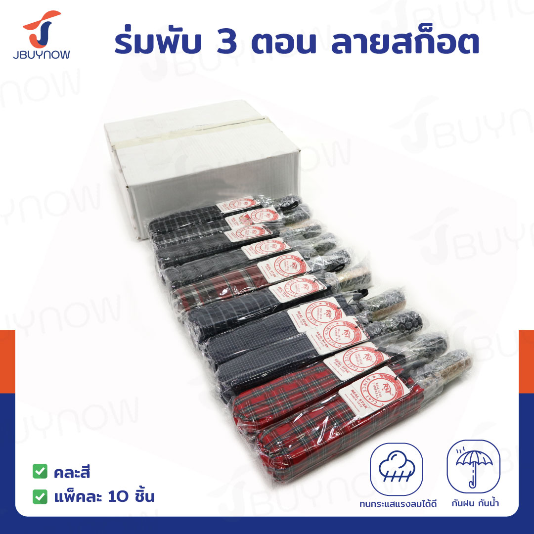 ร่มพับ 3 ตอน ลาย สก็อต คละสี แพ็คละ 10 ชิ้น