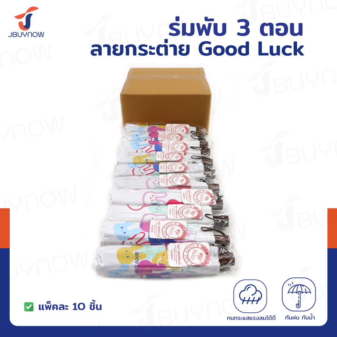 ร่มพับ 3 ตอน ร่มพรีเมี่ยม ลาย กระต่าย GOODLUCK แพ็คละ 10 ชิ้น