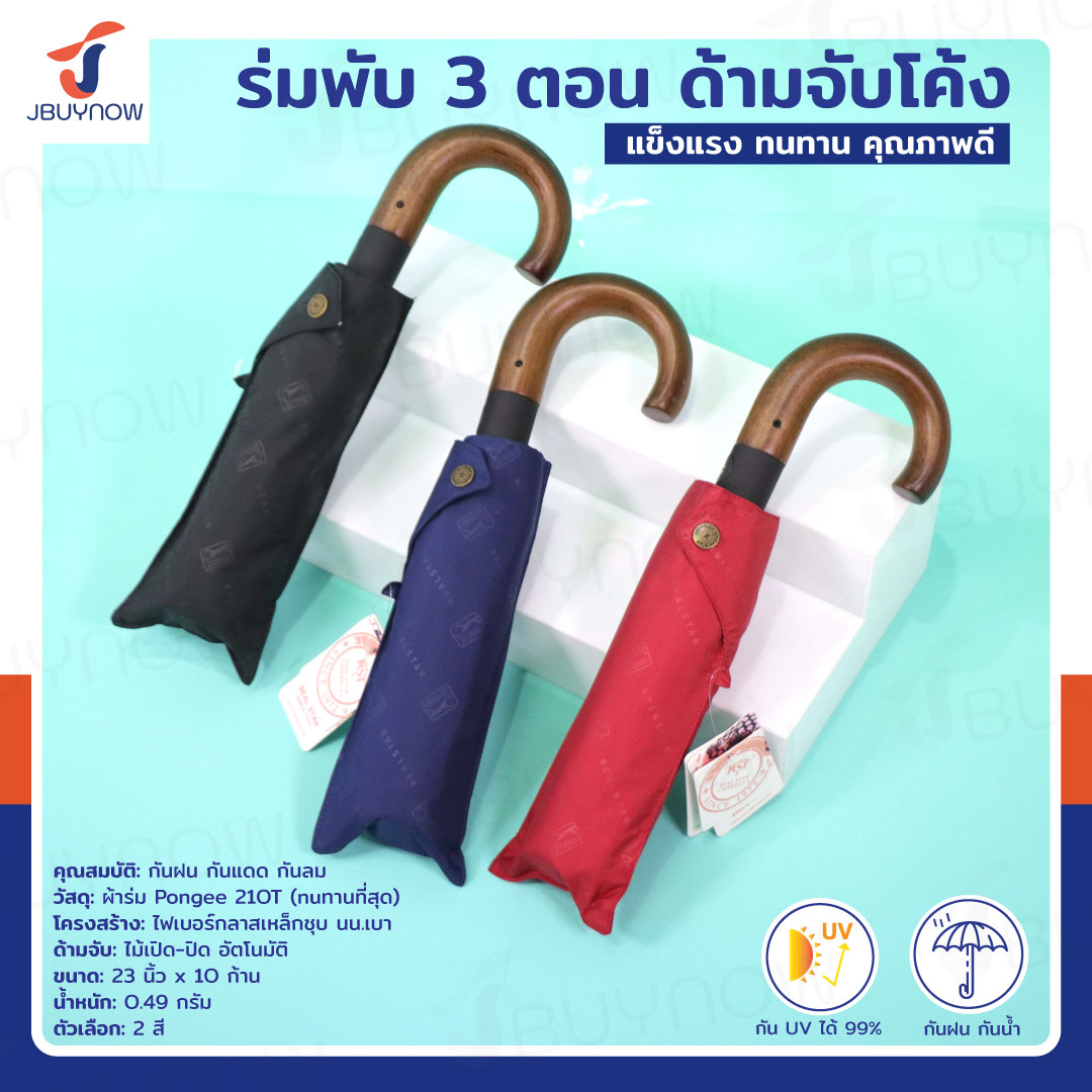 ร่มพับ 3 ตอน ร่มพรีเมี่ยม ด้ามจับโค้ง คละสี JBUYNOW RST3908